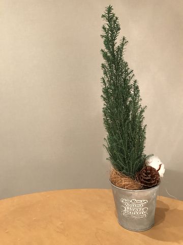 今年選んだコニファーは背が高め。微妙に葉の色が違う感じがしたので、じっくりと選びました。しかし、家に持ち帰って気づきましたが、ちょっと傾いていました。(笑)まあ、飾ってしまえばそんなこと気にならないでしょう。