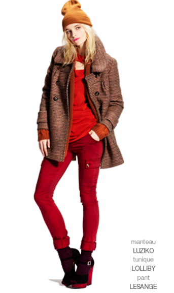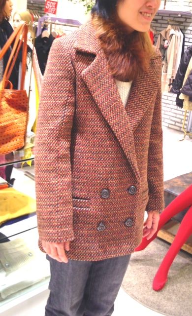 2着目。オレンジ系のツイードコート。