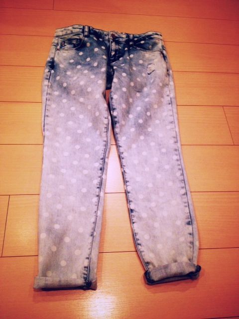 1本目は、水玉のスキニーデニムです。