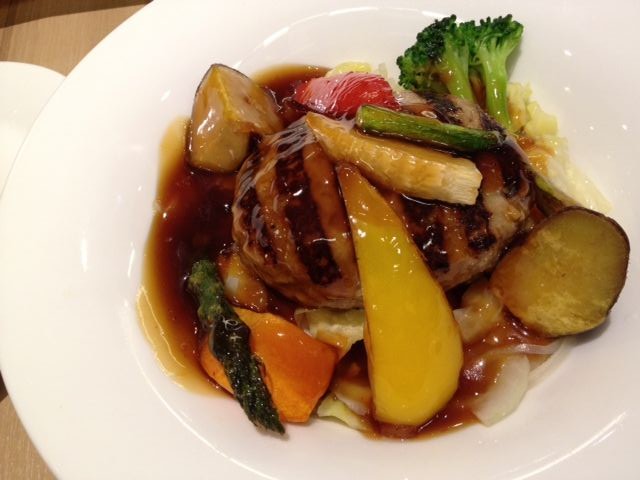 彩り野菜の黒酢ソースハンバーグ @Denny's