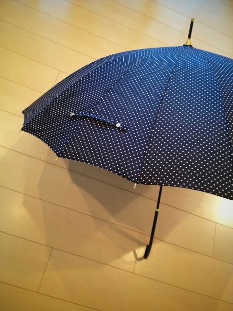 早速、小雨のぱらつく中、傘をさしました。なんだか傘の下から見上げるドット柄の景色は、心地の良いものでした。
