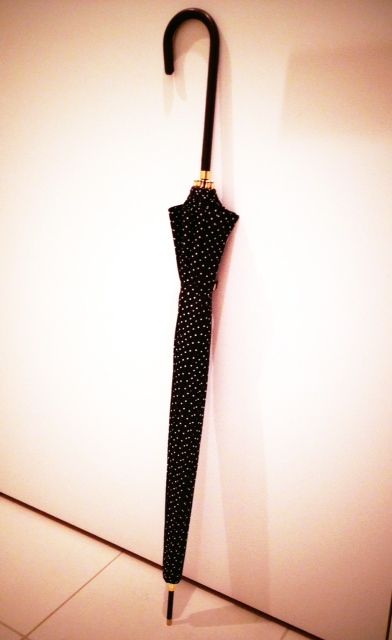 開いてみて驚いたのが、傘の骨組が16本で軽量です!こんな繊細かつ、丈夫そうな作りは初めてです。閉じるときは、瞬時に綺麗に収納できるのです。柄の部分は、ダークブラウンのレザー風。一緒に売られていた傘の中では、かなりしっかりモンに見えました。きっと、デザインが好みのため、値段が高くても買っていたでしょう。これは、ラッキーでした ♪