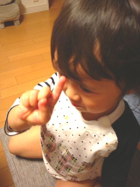 と聞かれて「1」と指であらわしている写真がこちらです。