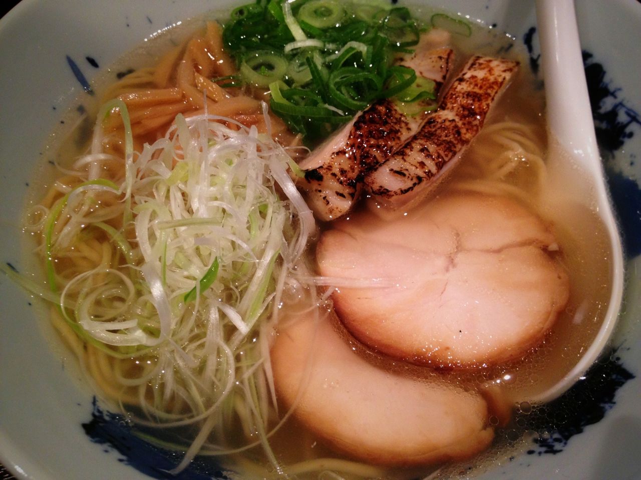 確かに、「ラーメン」というよりも、蕎麦に近い感覚のラーメンです。コシがあって、それでいてつるりと食べやすい細麺。塩味のスープの上に、さらさらのねぎと上品なチャーシューは、最高においしかったです!