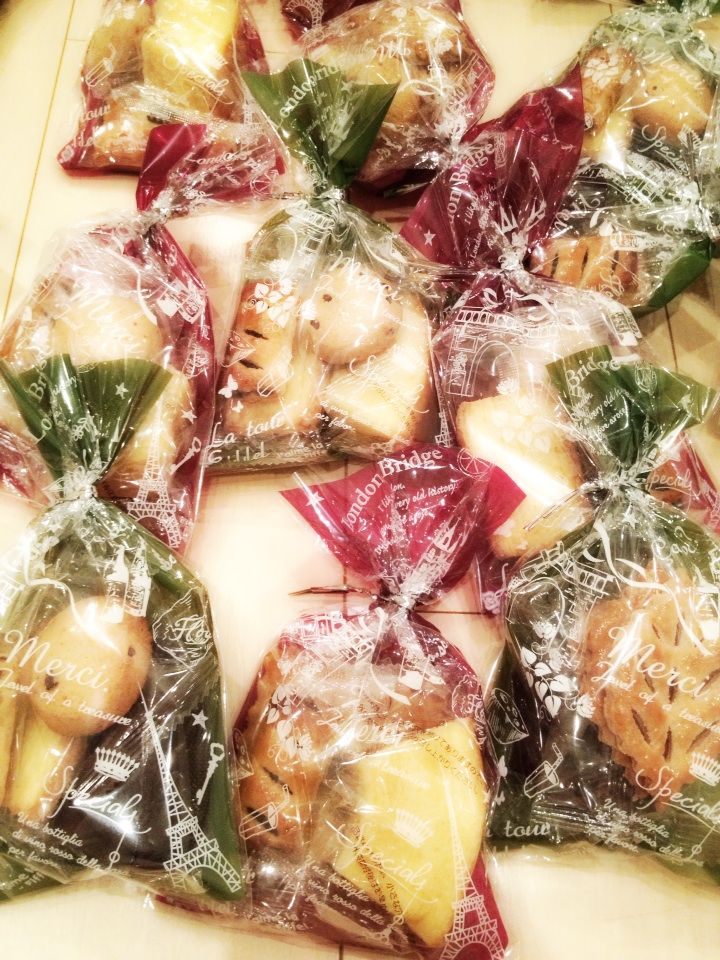 お菓子の袋づめを知人にも手伝ってもらっていました。