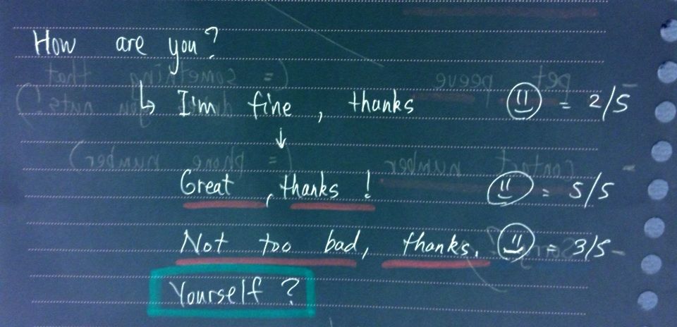 「"Yourself?" とキャッチボールしてね」と言われました。