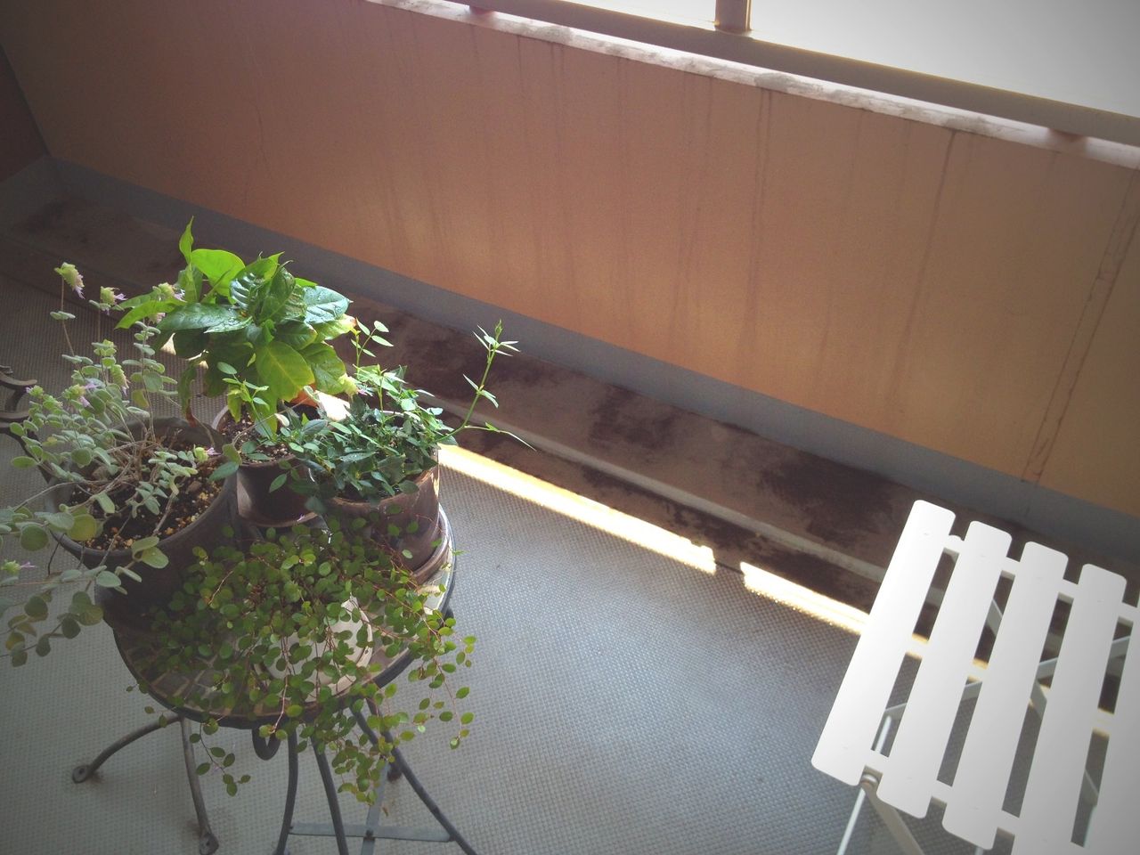 すっきりのベランダで。