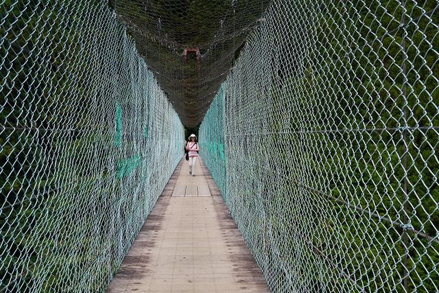 まずは、入口にあたる、鍾乳洞の見学からです。この鍾乳洞に行くには、モノレールで。それは、まるでジェットコースターのような車体。森林の急斜面をずんずんと登っていきました。