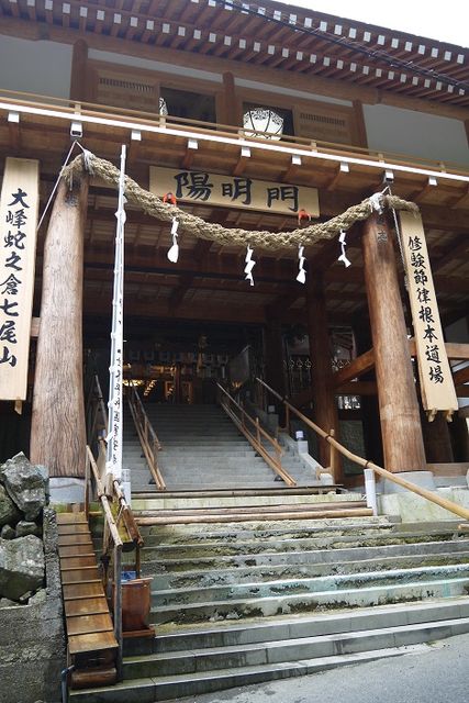 ゆっくりとさせていただいてから、温泉街へ向かう道に、修験者道場がありました。ものすごい迫力!