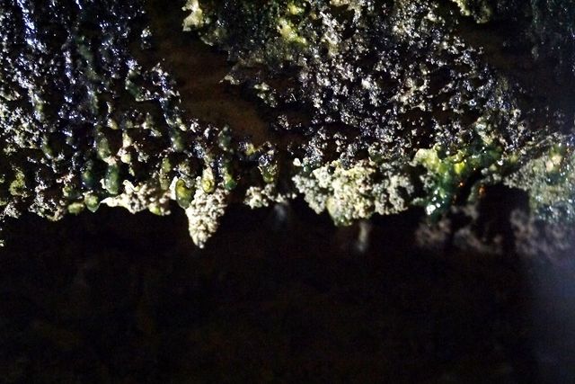 鍾乳洞は、暗闇で寒々しいし、少々不気味に感じてしまいました。長年の間、水が滴り続けて、鉱石のように固まってしまったもののようです。