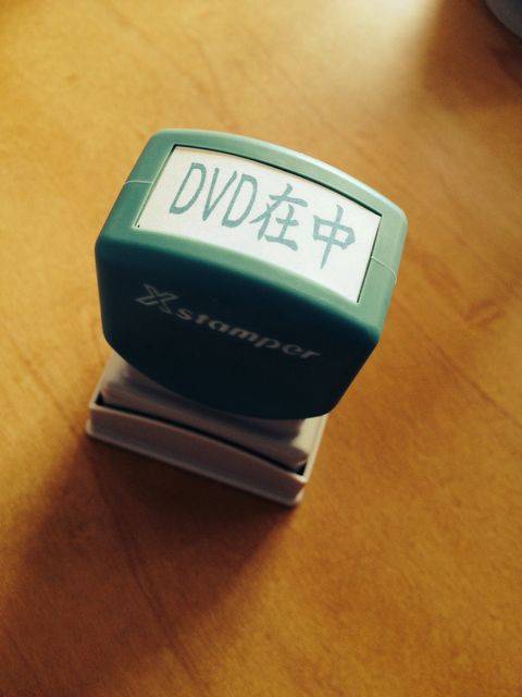 文房具屋で、「写真在中」と「DISC在中」のかわいらしいスタンプは、