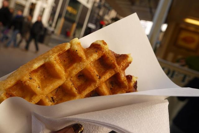 すぐにショップが立ち並ぶ場所に入っていきましたが、この日は日曜日。すべての店は閉まっていました。逆に時間がないから、1回目の観光としては、その方がよかったかなと。おまけに観光客も少ない日曜日のようで、場所にたどり着けるか不安な気持ちを掻き立てます。とりあえず、ワッフルでも買って、お店の人に聞いてみることに。