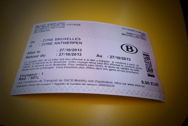 「アントワープ」と告げると「往復? 今日戻りますか?」と英語で聞かれたので、すぐに買うことができました。切符を見ると、ブリュッセルとアントワープの区間の一日乗車券のようなものでした。
