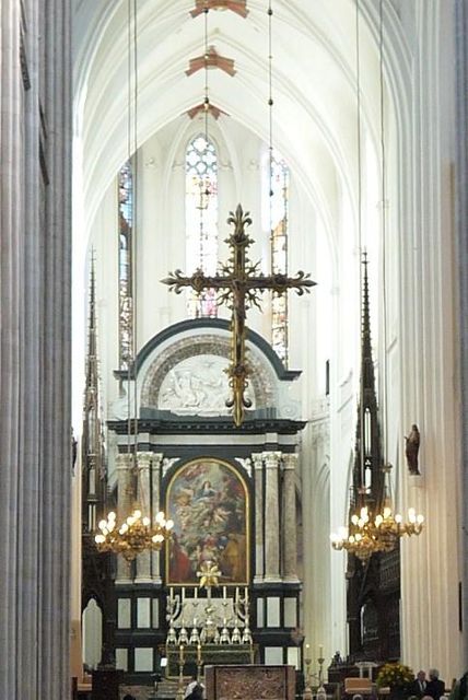 ベルギー最大のゴシック様式教会である聖母大聖堂。白が美しい内装。ステンドグラスを通して光が差し込み、さらに輝きを放っていました。