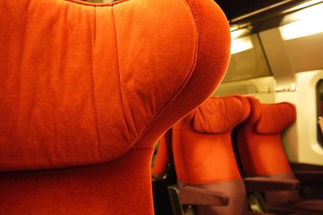 帰りのタリスは1等席にしました。背もたれ上部がふかふかです。