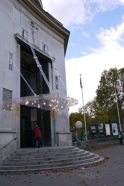 エントランスの屋根は、電球の光が何十個もついているデザインですから、なにかクラブとか、ファッションショーでもありそうな雰囲気です。調べてみると、「Palais de Tokyo」(パレド・トウキョウ)と書いてありました。そういえば、行ってみたいかもと思って、チェックしていたところだったと!