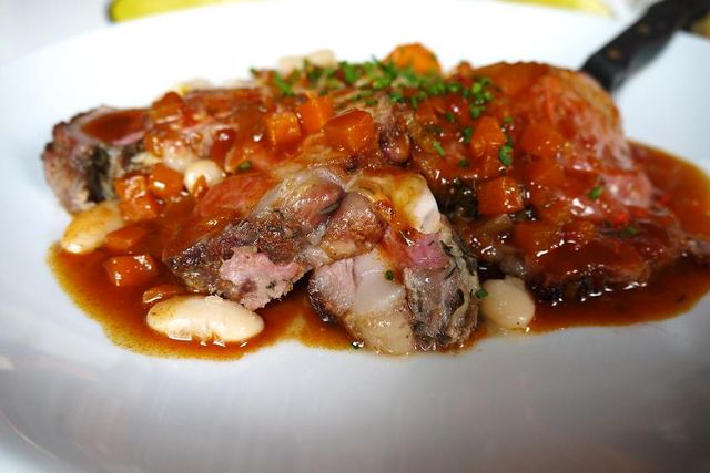 メインはラムをオーダーしました。付け合わせはビーンで、トマト味。お肉がとても柔らかくて、かなり美味しいです!フランスに来たらぜひ味わいたい一品です。