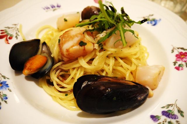 生パスタの歯ごたえもいいし、帆立がプルプルです。