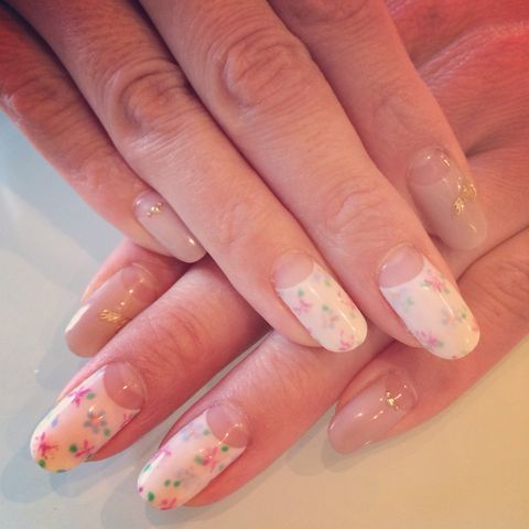 白の逆フレンチにお花を描いて頂き、