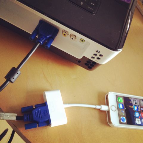 プロジェクターからのVGAケーブルを繋げるだけ。
