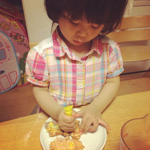 ゆめちゃんは、つまみ食い&デコレーション&食べること。すべてに集中していました。