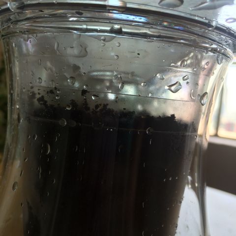 3.ポタリポタリと1滴ずつ滴がコーヒー粉に落ちていきます。