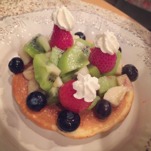 ふた品目:エッフェル塔をイメージしたフルーツパンケーキ。 by 友人