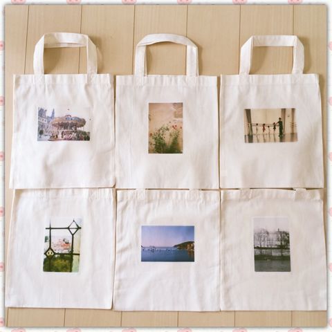 A small gift for all who attend the 8th year talk event! 2014.07.01 05:21 4月のSpring Live で、アイロンプリント技を知って以来、たまにプリントバッグを作っています。そこで、9/11、10/8開催の8周年トークイベントに参加された方へ、全員プレゼントとしてお作りしたいと思いました。まずは写真を選び、6枚作ってみました。Paris、南仏、ballet lessonで撮影したものです。 サイズB5です。私は、ボイトレ、英会話のお稽古バッグとして活用しています。枚数が多くなりますから、アイロン掛けは初夏中に終わらせたいと思います。笑