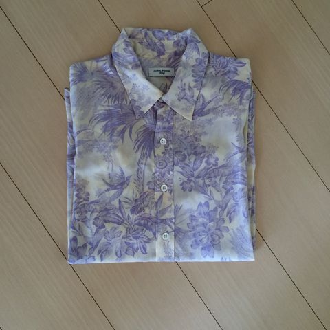 ライトパープル花柄、レーヨン素材のブラウス。