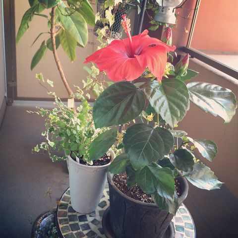 プチセミに前日に、もうすぐ咲きそうなハイビスカスを購入しました。