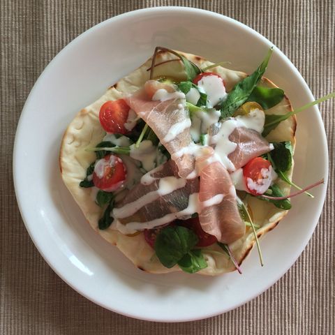 米粉入り薄焼きピザ(無印良品)で、生ハムとルッコラのサラダピザ。