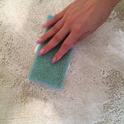 2.絞ったスポンジで泡が消えるまでカーペットになじませる。