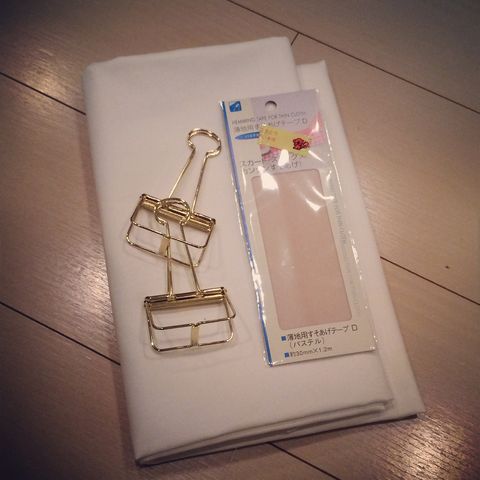 本日、新宿のオカダヤで布を購入し、100均で、ガラスにつけるフックと、すそ上げテープを購入。たまたま入った文房具屋では、イメージしていたクリップを見つけました。
