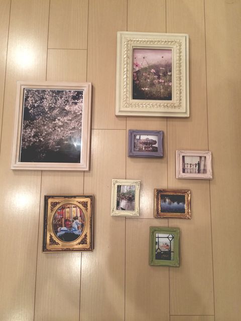 それで、写真をどう飾るのか? 考え始めたのですが、まずはおもむろに私の部屋のフォトフレームを並べてみました。