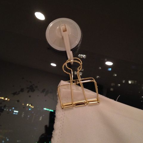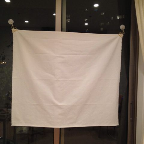 約1平方メートルの布に裾上げテープを施し、吊るして出来上がりです。