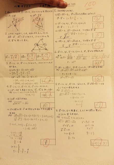ところで、100点のテストというのは、高校3年代数幾何のテストです。