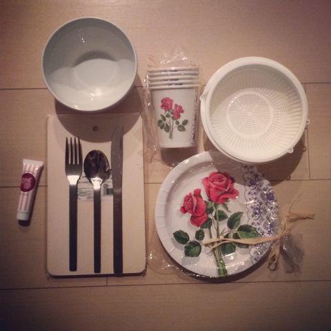 ミニザル、まな板、シルバーセット、紙皿、コップ、ハンドソープ