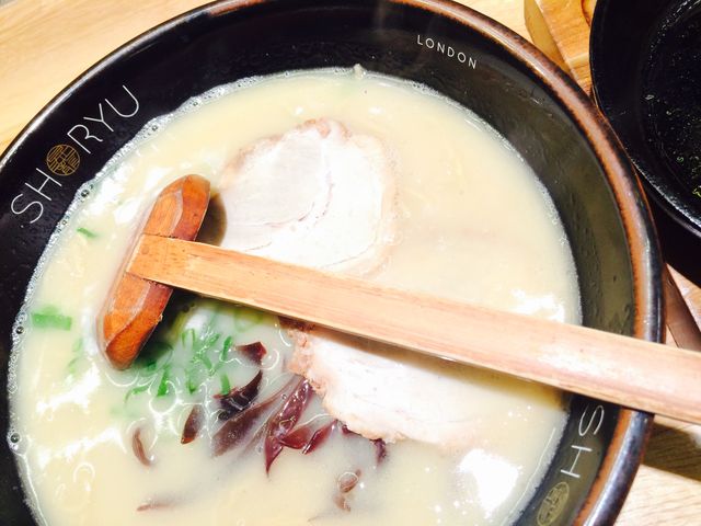 オーダーしたのは、豚骨プレーン£9と鉄鍋餃子£4です。
