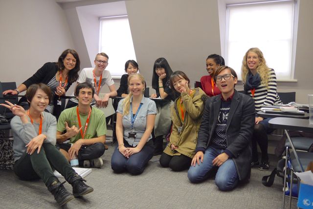 その日は、10名くらい入校でした。学生は、イギリスという立地柄、スイス、ドイツ人なども多く、アジアからも中国、韓国、日本といて、そのほか、ブラジル人などもいました。面白いことに、国が偏ることなく満遍なくといったかんじです。