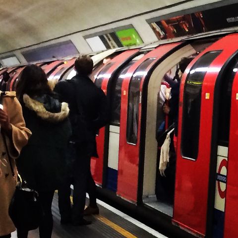 世界最古の地下鉄のトンネルは小さく、それに合わせて車体も丸みを帯びて、まるで蝶の幼虫のよう。背が高く骨格もしっかりしているイギリス人が、黄色い線の内側なんて無視して、入ってくる電車との隙間10センチの近さで、ホームにいっぱい、いっぱい並んでいました。朝の通勤ラッシュです。