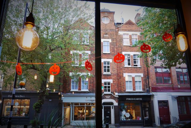 お店の写真を撮るため外に出たら、ガイコツが座っていることに気づきました。(笑)ロンドンでは、スカルモチーフ、多めです。大英博物館にガイコツが多めに展示されている国ですからね…。それでも余るほど?!