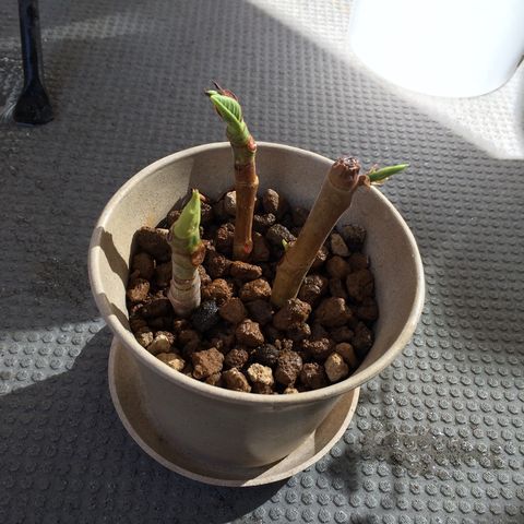 枝だけの挿し木からも、あたらしい葉が生えてきました。株のおすそわけもできそうな感じです。葉が生き生きしている姿を見ると、こちらまで気分が良くなるもの。育てる人は私しかいないですから、自分がした施しが、そのまま返ってくる植物は、自分の姿が鏡のように跳ね返るので、水を上げたり、カットしたりする心の余裕は、常に持っていたいものです。