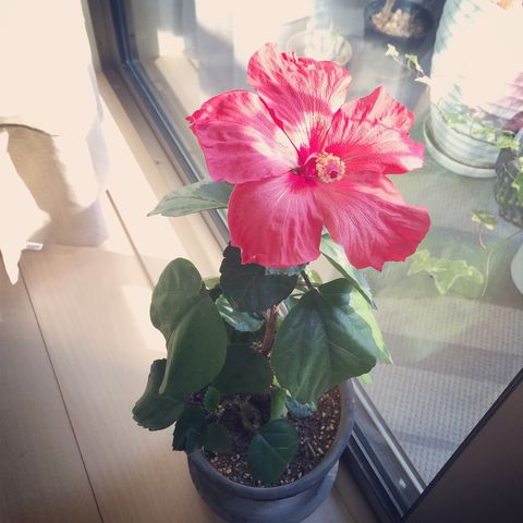 夏に購入したハイビスカスが、いまだにつぼみをつけているので、先週、ベランダから部屋に場所を移してあげたところ、遂に開花しました。夏に比べると、つぼみの期間がかなり長かったのですが、とうとう咲いてくれたことにほっとしました。なんだか、クリスマス期の観葉植物、ポインセチアの配色と同じですね。