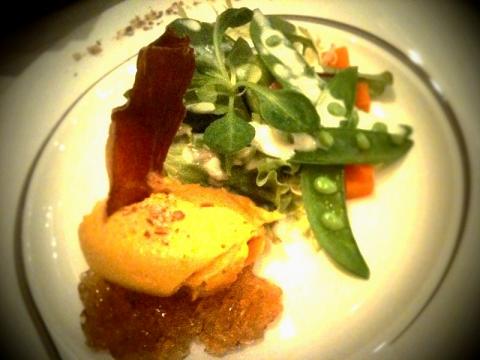 ベイビーリーフとクリスピーなプロシュート コンソメゼリーを添えて