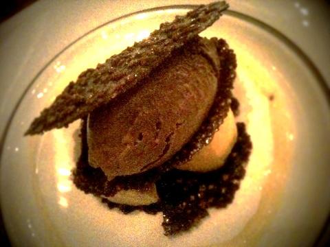 チョコレートとバナナのミルフィーユ マンゴーソルベと共に