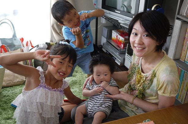 友人の子供と一緒に写真撮ったら、急に3人子供がいるみたいに 笑
