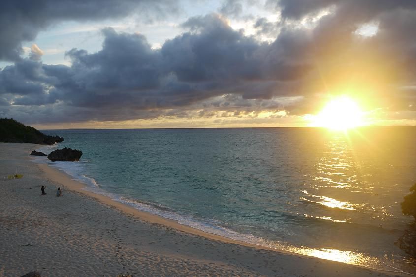 お別れした後に、ホテルのビーチで夕焼けを見ました。