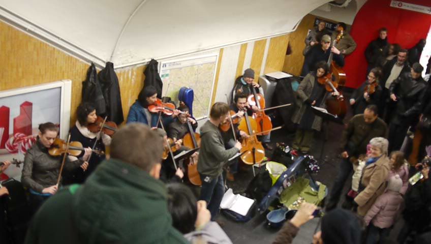 移動中、連絡通路でオーケストラ?をみました。