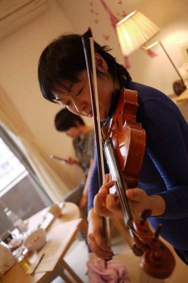 真理子さんは、明日香さんのヴァイオリン譜ができたての中、