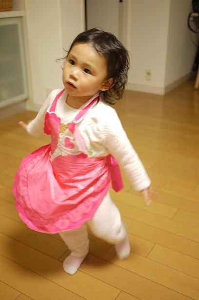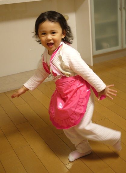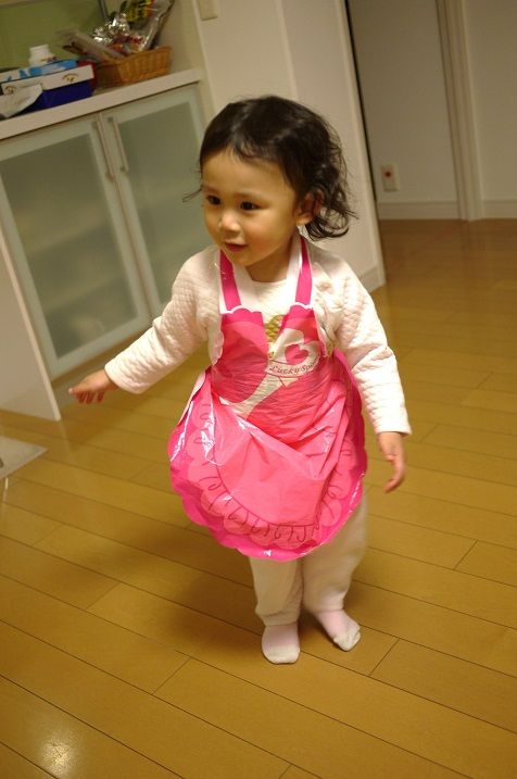 何かの付録のビニールのエプロンを寝巻の上につけていましたよ。